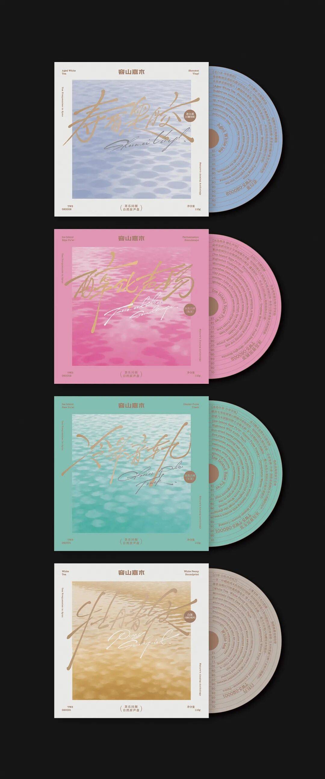 来看包装细节,它将茶叶与黑胶唱片这两个看似不相关的元素进行了创意融合。从外观上,包装模拟黑胶唱片的形态,色彩丰富且搭配和谐,粉色、金色、蓝色、绿色等不同色调,既给人视觉上的愉悦感,也可能对应着不同的茶叶品类或风味。这种设计打破了传统茶叶包装的固有印象,把品茶与音乐欣赏这两种能带来感官享受的体验联系起来,仿佛在告诉消费者,品茶如同聆听一首悠扬的乐曲,是一场多感官的美妙邂逅,为茶叶增添了艺术与浪漫的气息,也能吸引那些追求时尚与独特体验的消费者。