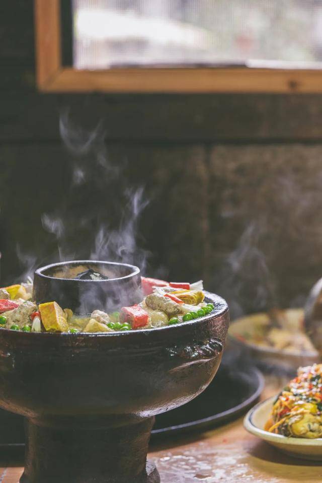 上桌时配上蘸水,热气氤氲的土锅子就做好啦!一口让人瞬间满足。(制作工序繁多,想吃要记得提前预订哦~)