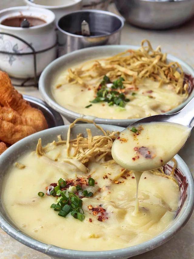 咸乎乎、黏乎乎的一碗稀豆粉是用优质的白豌豆磨成粉,熬煮成粥状而成。