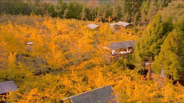 每到深秋,银杏村便铺展出一片金色海洋,百年古银杏洒落满地金黄,炊烟袅袅中宛如画卷。
