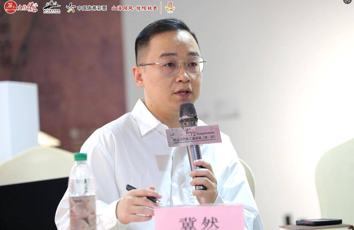 策展人冀然阐述了展览的叙事逻辑。他表示,“温度”展览通过四大维度构建复调式叙事现场,彰显陶艺在传统与现代间的张力与突破。佛山作为“南国陶都”,丰富的陶泥资源与深厚的文化传统为创作奠定坚实基础,本次研讨会聚焦陶泥物质性、烧制偶然性、自然意象表达等核心议题,旨在通过思想碰撞推动陶艺创作与研究系统化发展。