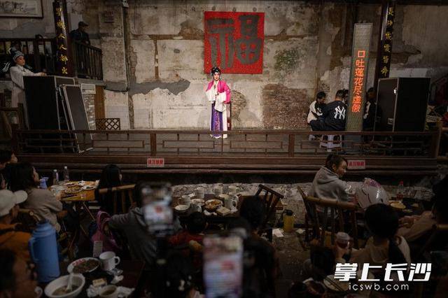 长沙晚报掌上长沙10月25日讯(长沙晚报全媒体记者黄启晴)10月25日下午,芙蓉区东茅街茶馆,云梦山海·东茅街茶馆首届戏曲艺术节开幕。来自市花鼓戏传承保护中心演员们,以一出出精彩演出博得了市民游客阵阵掌声。市民游客在喝茶听曲之中,体验老长沙人消磨时光的好方式。