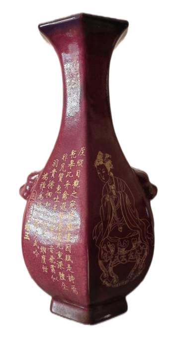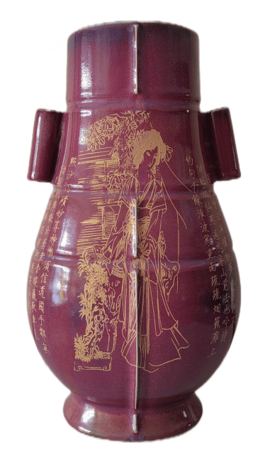 宋代钧窑玫瑰紫釉描金人物故事纹惯耳瓶(一对)