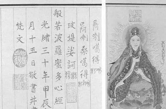 北京故宫博物院现藏有一件慈禧用朱砂抄写的《般若波罗蜜多心经》,落款为光绪三十年(1904年)。因抄写佛经须本人亲为才见诚意,方能有功德、得福报,故慈禧应该不会让人代笔。观此经文,笔力孱弱稚嫩,结字松散呆滞,毫无生气,尚属初学水平,与“复殿留景”相去不可以道里计。