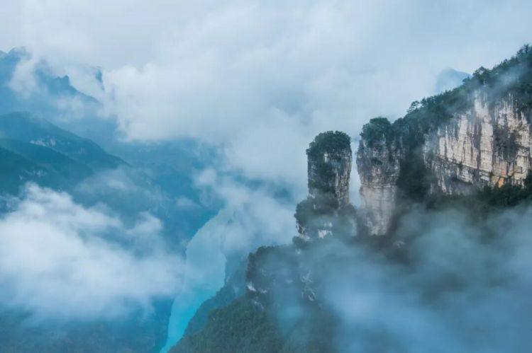 黎芝峡以峡江山水著称,奇峰对峙,江流蜿蜒,晴天可见“黎芝光”五彩奇观,峡中遍布古纤道、剑劈岩等自然石刻,舟行如画。毗邻的霸王谷山势雄峻,层峦叠嶂,云海霞光交织,共绘壮丽山水长卷。通过串联两地核心资源,酉沿段被重新定义为乌江百里画廊的“正统核心”,凸显其作为渝黔文旅纽带的不可替代性。