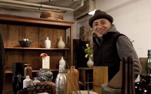 上野雄次和其他的花艺家不同,他从不用花卉市场买来的花,总是从野地寻找素材,他着迷于从野地寻找素材。