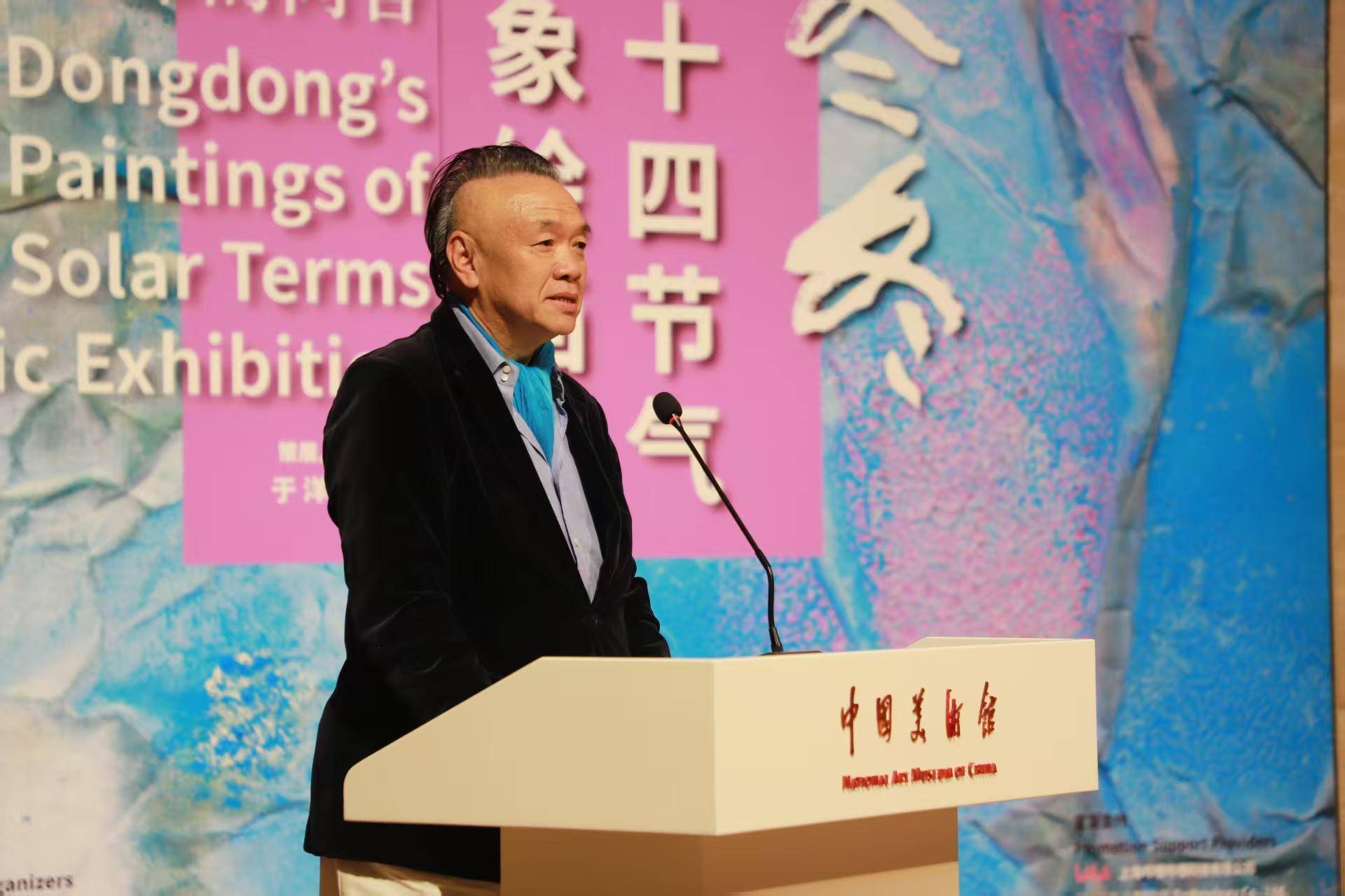 中国美术馆党委书记杨雄致辞表示,徐冬冬先生艺术探索数十载,其抽象绘画融汇中国书法线条与水墨意蕴,创新性地构建了具有东方美学特色的现代艺术语言。此次 “二十四节气” 系列作品,是从传统文化深处走向现代性表达的生动体现,展现了和谐共生、美美与共的精神追求。