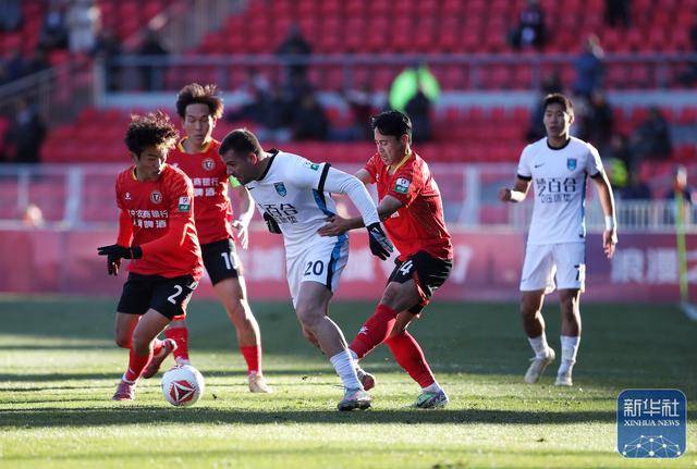 ↑ 南通支云队球员科列夫(左三)在比赛中。新华社记者 李钢 摄