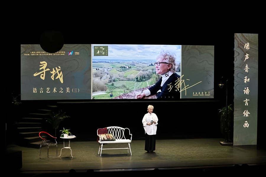 在上海朗诵界的圈子里,有一个项目很吸引大家,并产生了很大影响,那就是上海戏剧学院在端钧剧场呈现的“寻找语言艺术之美”的现场演出。它实际上是一堂具有示范性的语言技巧训练的大课,包括讲解和演绎,而且还线上线下混合,同时在网上直播。
