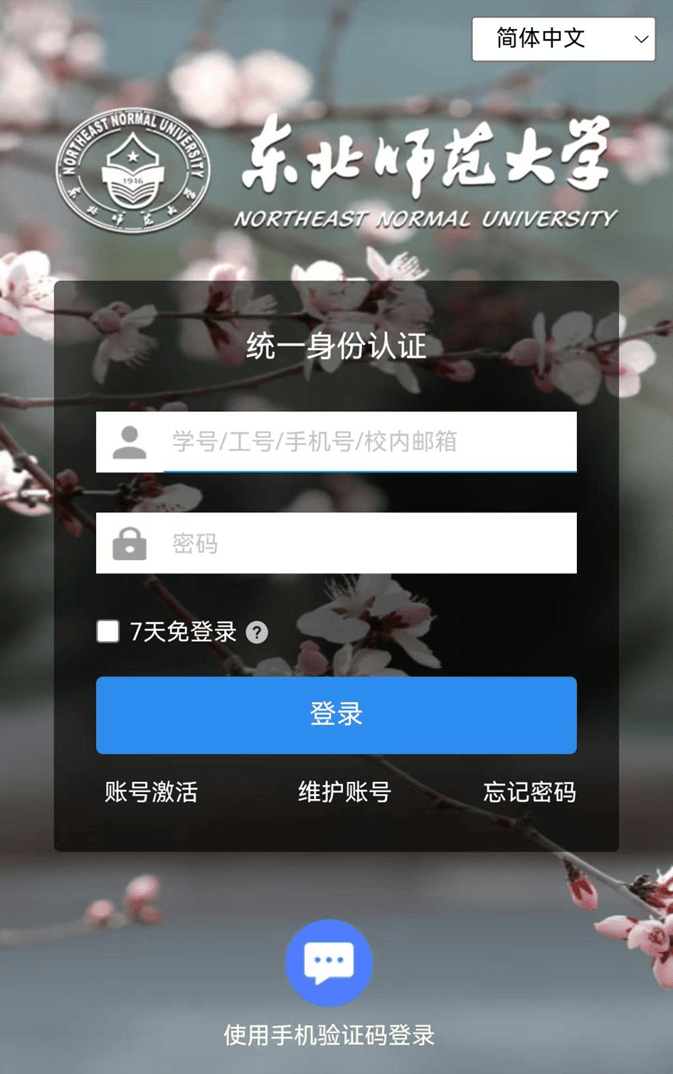 3.首次登录,需进入统一身份认证,填写账号和密码,并绑定手机号。