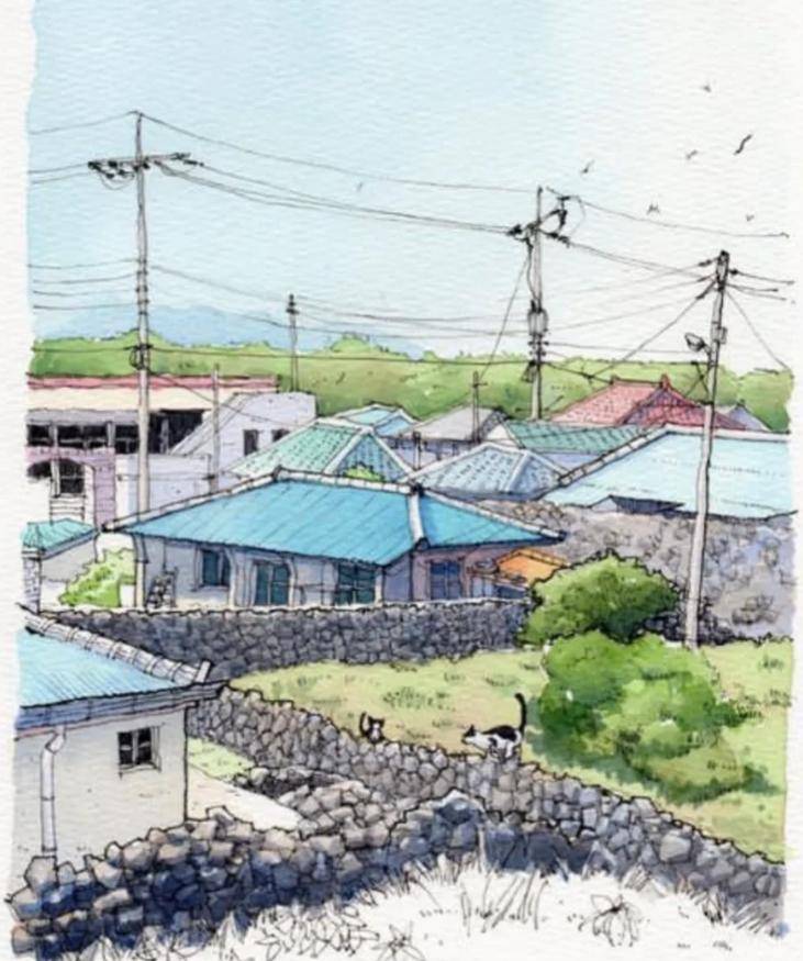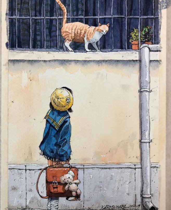 韩国水彩画家 Karmwoora 的绘画风格具有清新治愈、细腻柔和等特点。