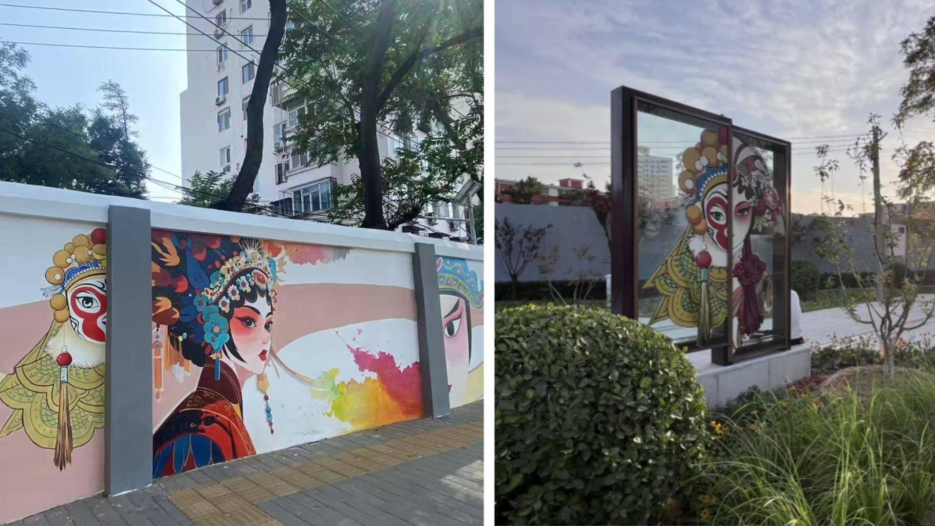 清华大学美术学院学生包雨萌所在团队,与和义街道合作聚焦南中轴沿线10余处点位,辐射70余处公共空间,以墙体彩绘和城市“家具”为载体,与居民志愿者、新就业群体、小朋友开展“艺术共创”,在城市微更新与公共空间艺术化改造方面注入青年学子的创意与智慧。