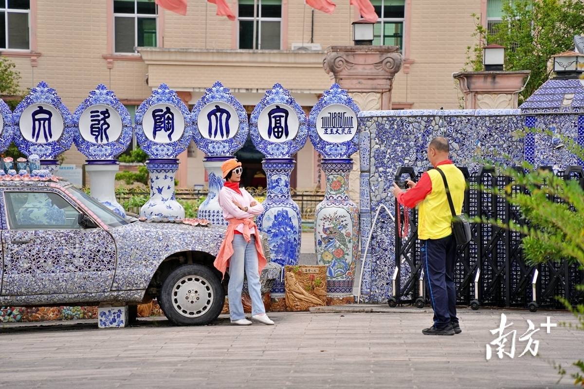 走进位于大埔陶瓷文化创意产业园的富大陶瓷工业旅游区,首先映入眼帘的,是用几十万片青花瓷片镶嵌装饰而成的陶瓷楼,无数纹样精致的瓷片在阳光下熠熠生辉,带来震撼的视觉效果;大门右手边,则是一台独一无二的青花瓷小汽车,车身表面清一色贴满了青花瓷,车牌上“富大陶瓷”四字犹如一张亮眼的名片;再往里走,还有世界上最大的七子龙凤雕花陶瓷大床、巨型陶瓷山水画《青花之乡万川古韵》……