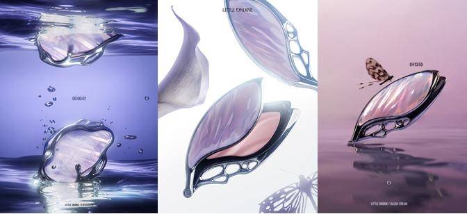 「流迹」眼影流转如光迹,「弥光」腮红折光似蝶翼,「浮萤」口红透亮如水光,每一件产品都不只是彩妆,更是一件可触碰的微型艺术装置。小奥汀将流动的水、灵动的海洋生物、柔软的不规则曲线这些元素从梦境中呈现在艺术彩妆创作里,全系列产品采⽤有机形态与流线型的设计,让它们既有如极光般梦幻的生命力柔曲,又带着现代科技的诗意。在快节奏的忙碌生活中,小奥汀用彩妆构建一个短暂抽离现实的白昼梦境。以蝴蝶象征破茧的自我蜕变、海萤呼应内心深处的自由渴望、迷离斑斓的蝴蝶埋下鼓励拥抱情绪、探索边界的隐喻,陪伴女性在现实与梦境之间自在行走,寻找最真实的自我。