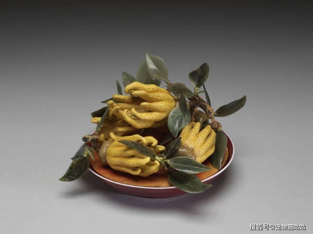 红釉盘盛木雕彩绘佛手|台北故宫