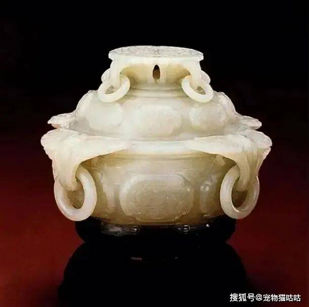 青白玉八宝蝴蝶活环耳盖炉|北京故宫