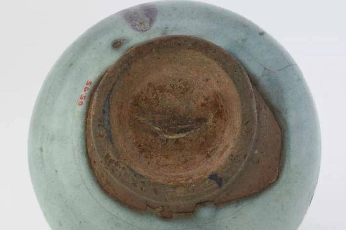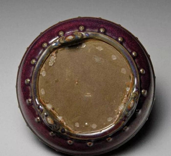 宋钧窑釉活,釉到足圈、元钧釉呆板露足多。宋器少雕琢,蚯蚓走泥纹明显。有的是兔毫纹,红斑有过渡边沿,有蟹甲绿,釉好胎如泥为宋。足粗走泥纹不活为元。