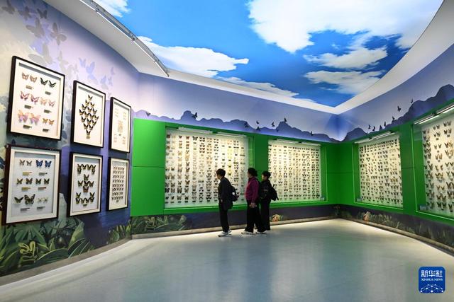 10月26日,游客在西北农林科技大学博览园昆虫博物馆参观。 西北农林科技大学博览园坐落于陕西省杨凌农业高新技术产业示范区,占地200亩,展馆总建筑面积16000余平方米,包括昆虫博物馆、动物博物馆、土壤博物馆、植物博物馆、中国农业历史博物馆5个专业博物馆和蝴蝶园、树木园及植物种质资源圃等。博览园收藏国内外昆虫标本120万号,动物标本8000余件,植物标本55万份,土壤标本2000余种,农史文物及农具2000余件,线装古籍5万余册,树木700余种。 博览园利用丰富的标本、实物、文物、模型和室外植物以及多种现代化展示手段,展现了动物、昆虫、植物、土壤的奇趣世界和农业科技历史,是融知识性、科学性、趣味性、观赏性于一体的农业科技知识大观园,也是集标本展览、园林观赏、科普教育、旅游休闲于一体的农业科技旅游景点。 新华社记者 李一博 摄pagebreak