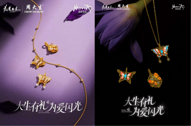 整个双十一期间,周大生整合线上线下全渠道资源,打造了多维立体的营销策略。9月14日,与无忧传媒正式达成战略合作,成立合资子公司,打造“达人矩阵+品牌供应链”直播生态、孵化珠宝垂类达人。这一合作将构建“体验-消费-传播”的生态闭环,为行业提供可借鉴、可复刻的新发展路径与合作模式。