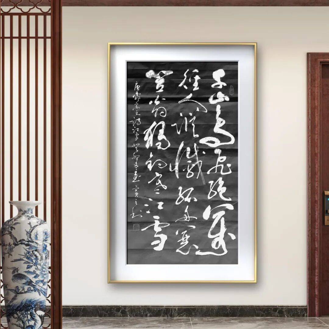 贾虎老师的草书似惊涛奔涌,通篇如一气呵成的长卷,字字勾连,虽偶有留白,却笔断意连。墨色游走间,如蛟龙腾渊,似骏马飞驰,笔墨飞舞间,尽显龙骧豹变之势,酣畅淋漓的气势扑面而来。运笔时,字势险峻却又稳如泰山,在险绝中寻得平衡,每一个字形都似灵动的精灵,于宣纸上跃动生姿。