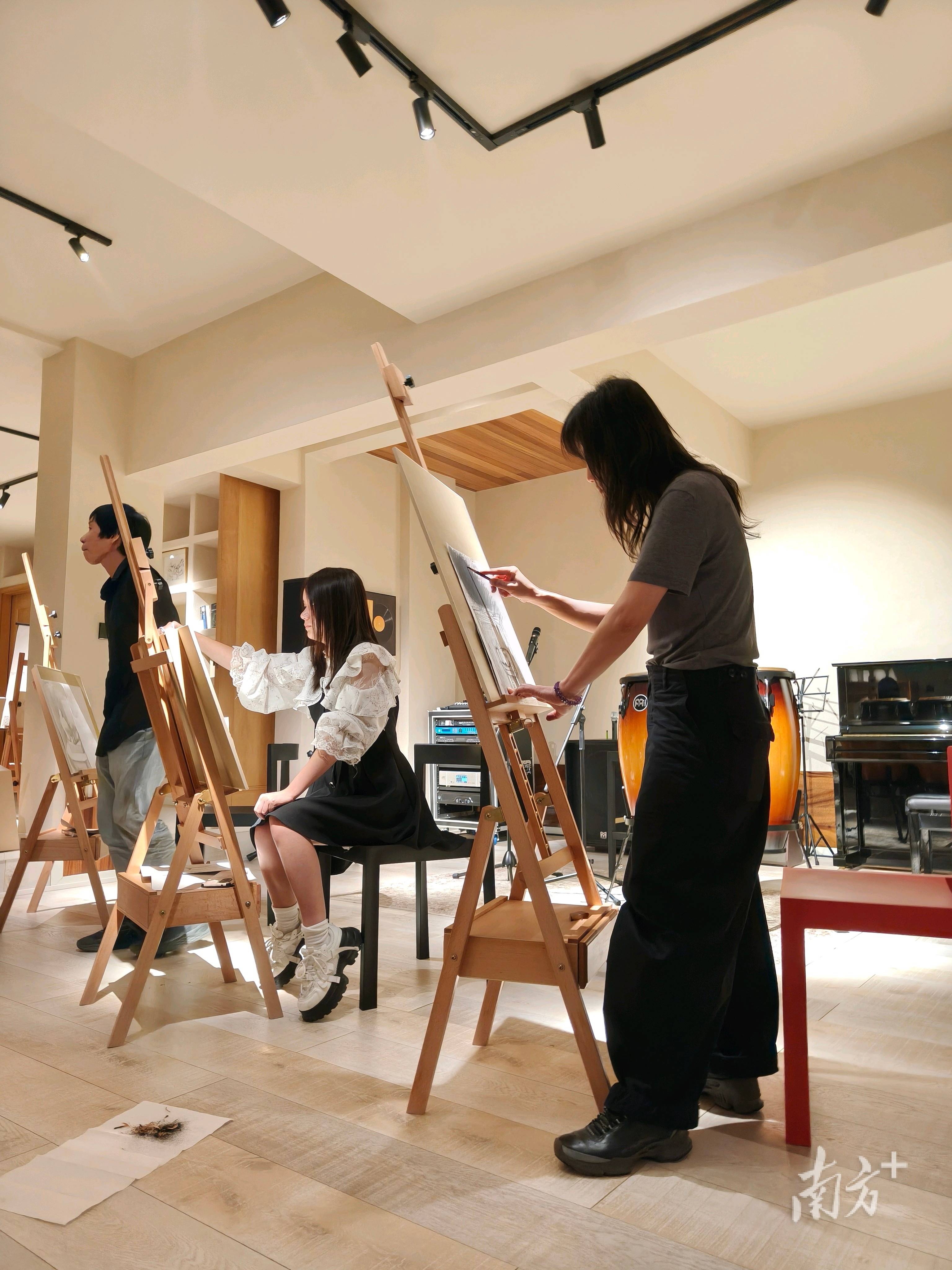 “我不是来‘上课’的,我是来陪伴他们成长的。”梁鹏飞说。在他的课堂上,素描、色彩、速写、雕塑都不只是技法训练,而是与艺术史、美学鉴赏、甚至音乐与文学、电影交织的“整体体验”。