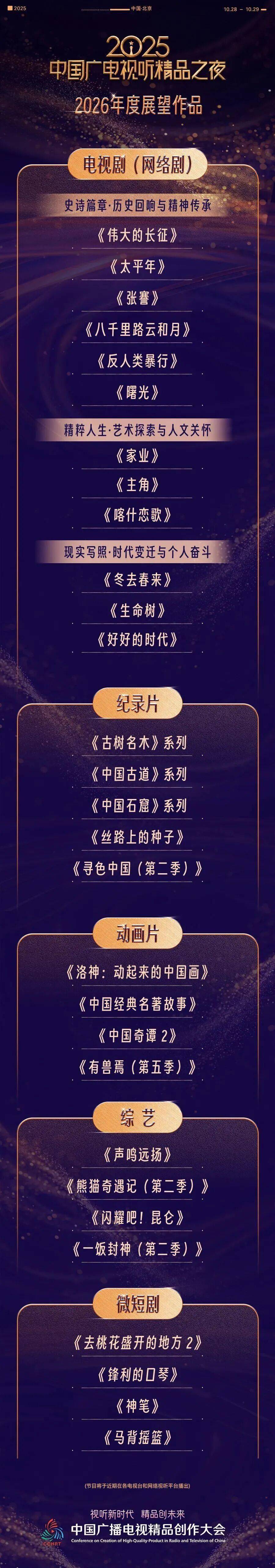 令人感动的是,精品之夜发布了“2025年度推荐作品”和“2026年度展望作品”两大片单,一部部精品之作仿佛是一次对时代精神的深情书写,更是一次关于中国故事如何被讲述、民族精神如何被传承、时代脉搏如何被感知的集体思考。