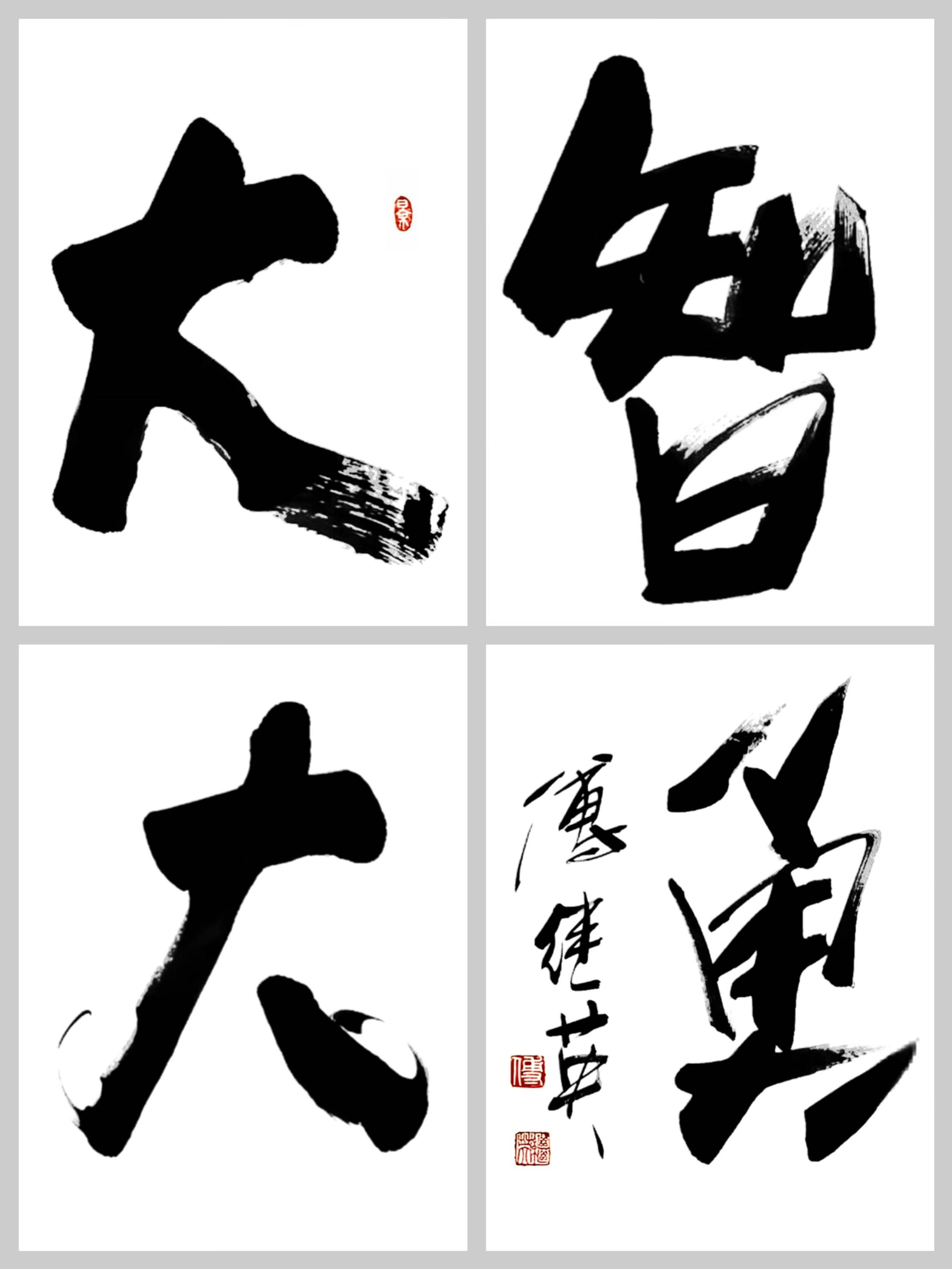 更重要的是,大智与大勇并非相互割裂的存在,而是相辅相成的整体。若无智慧支撑,勇气便成了鲁莽的 “莽夫之举”,易在冲动中酿错。若无勇气加持,智慧便成了怯懦的 “庸懦之思”,难在关键时刻付诸行动。唯有智与勇相互融合、彼此成就,方能在人生的征途上立于不败之地,这正是傅继英老师书法 “大智大勇” 背后,对人性力量的深刻诠释。