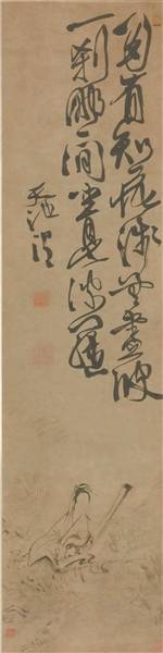 中国美术馆展出的明代徐渭作《莲舟观音图》中,直接表现了虚境的存在。其实这幅画更像是一幅书法作品——草书风格题字占据画面主要位置:“幻有知花,涉无尽波;一刹那间,坐见波罗。天池渭”。