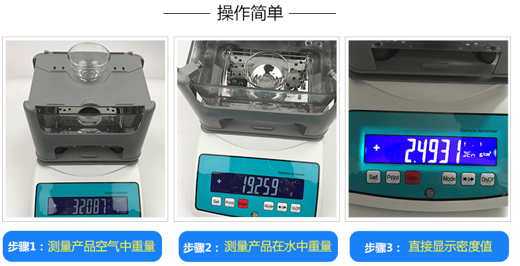2、将产品放入水中,显示产品水中重量,按ENTER键即显示密度值。