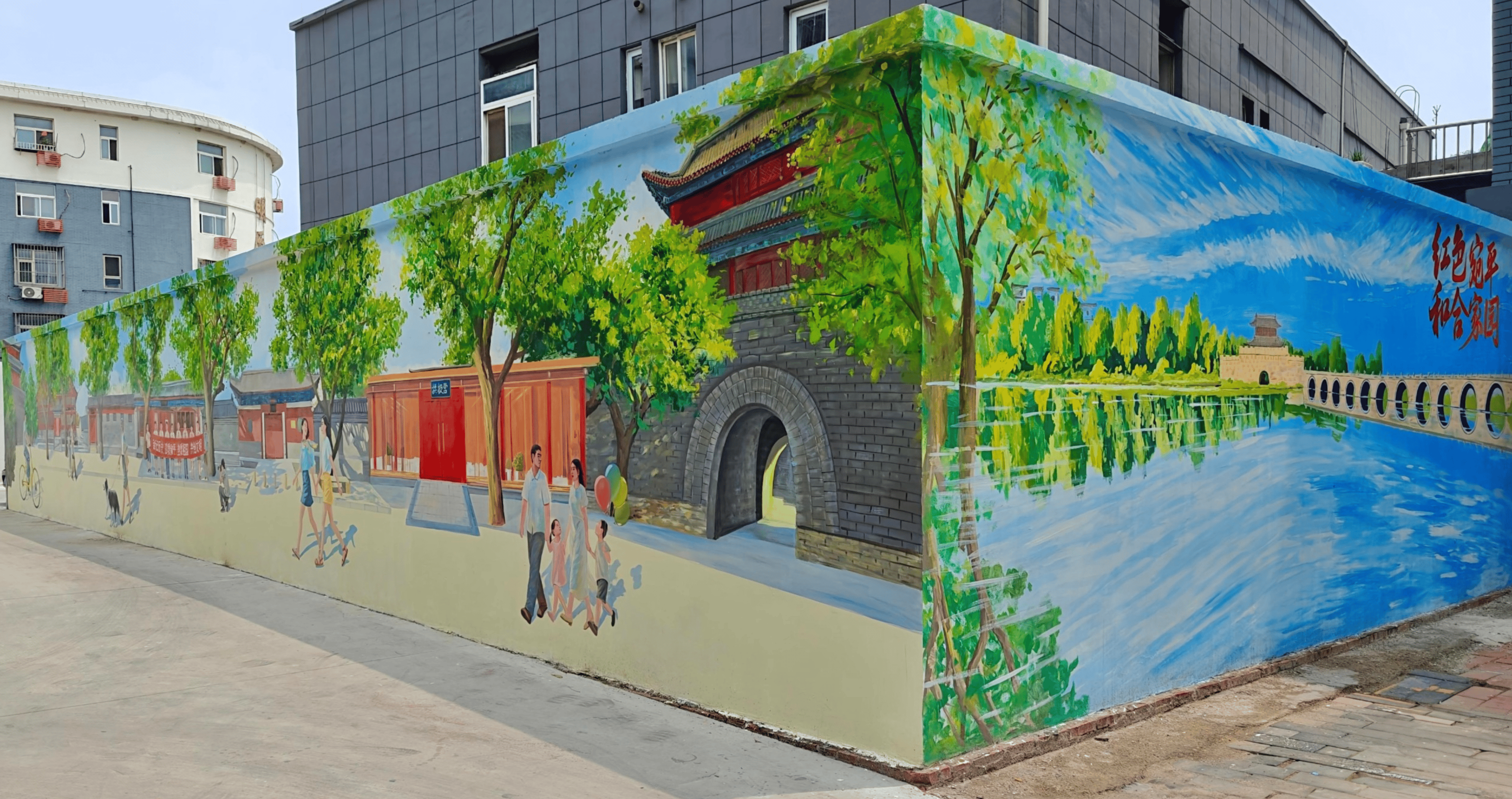 漫步丰台的多个街区,多面单调的水泥色墙体,如今变成了承载故事与美感的“立体画布”,有的绘着老街区的市井烟火,一笔一画间讲述着老街道的过往;有的铺展着清新的田园风光,麦田随风起伏,让人恍惚间置身乡野。