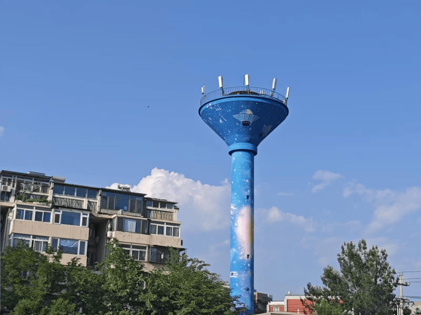 图为北京市丰台区的一座老水塔“变身”星空主题。新华社发