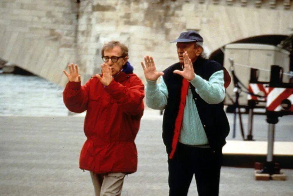 伍迪·艾伦与卡洛·迪·帕尔马(右)在拍摄现场