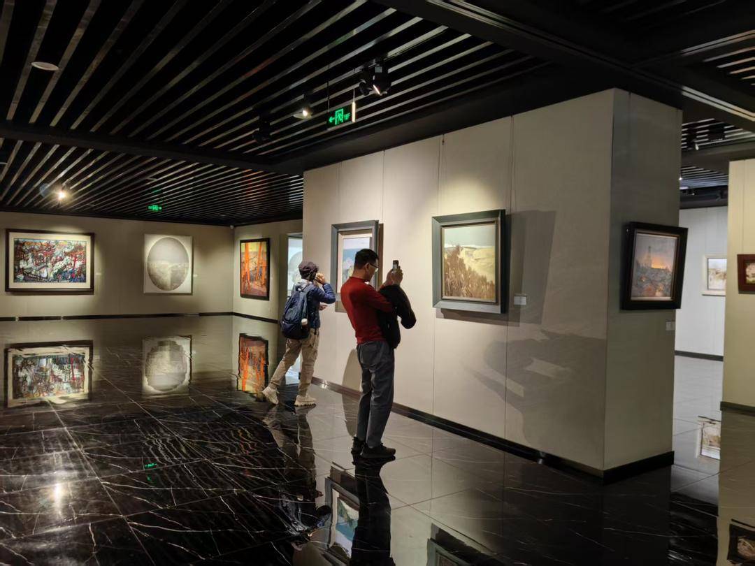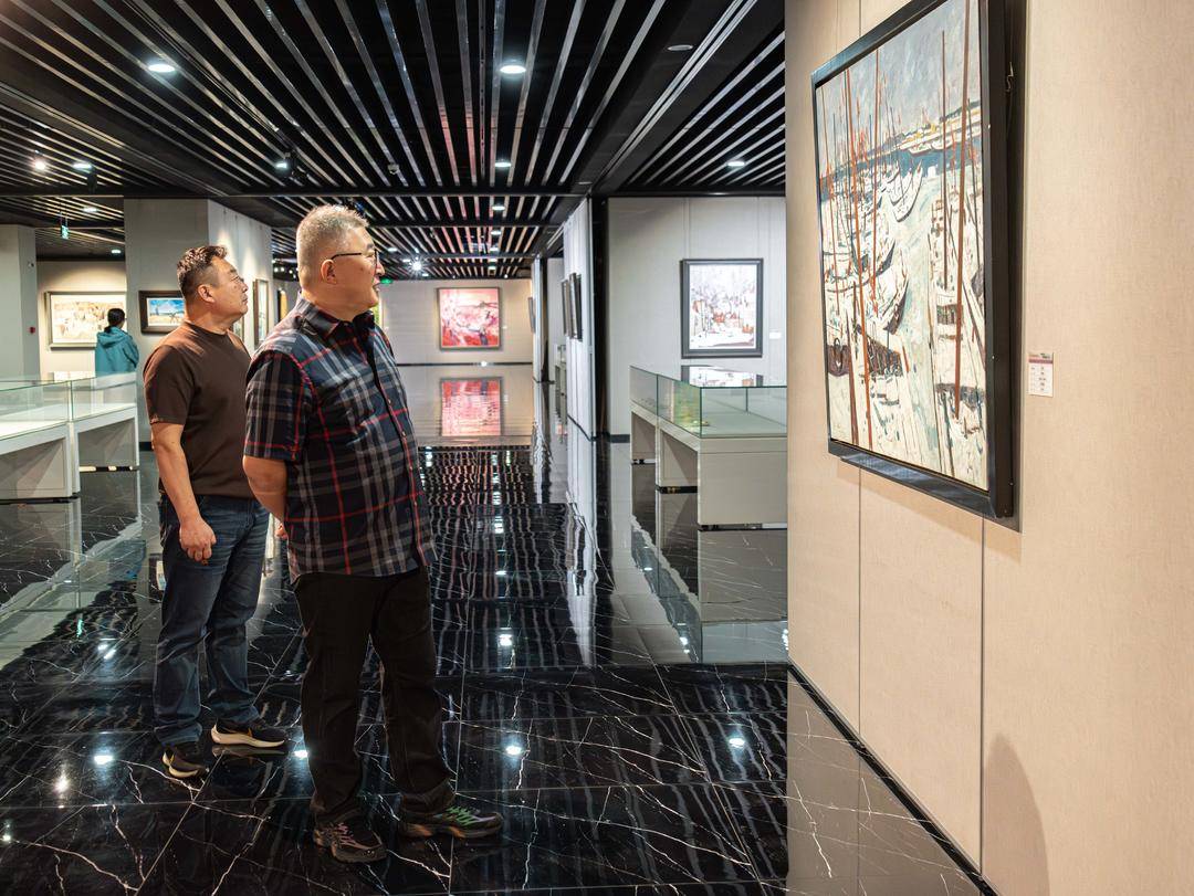 威海市文旅局副局长金连芳、威海市群众艺术馆馆长赛序浩等嘉宾出席了开幕仪式。本次展览聚焦"绿水青山就是金山银山"的生态理念,共展出27位青年艺术家的99幅风景油画作品。这些作品围绕"山河壮丽""乡村田园""城市新貌""历史遗迹"四大主题,从不同视角描绘了新时代中国的自然景观与人文风貌。艺术家们以色彩与笔触,构建出一幅幅具有"中国意象"的视觉诗篇,其中不少作品与威海独特的海滨风光、历史底蕴形成生动呼应,展现出山海相连、人文交融的地域特色。