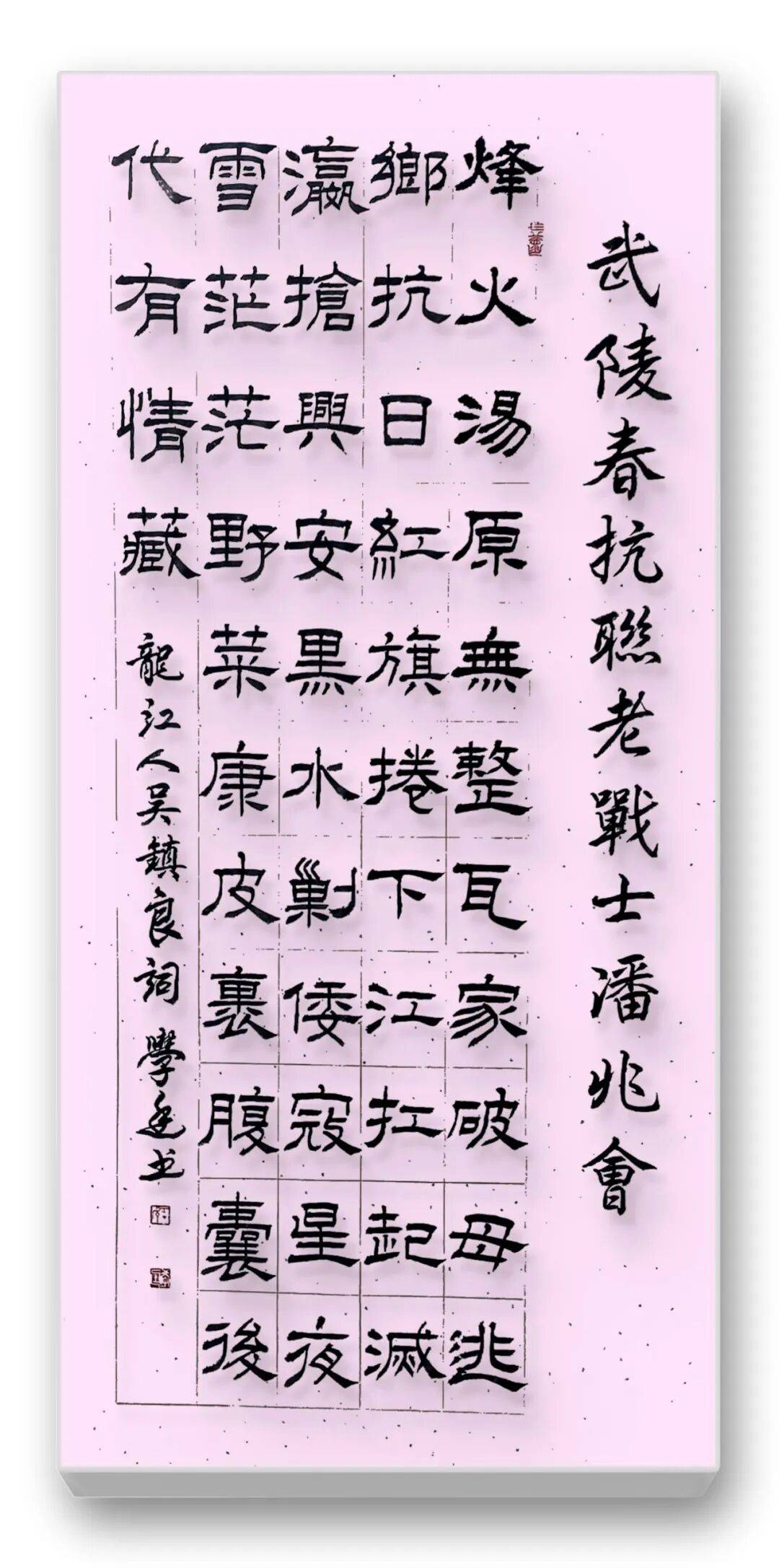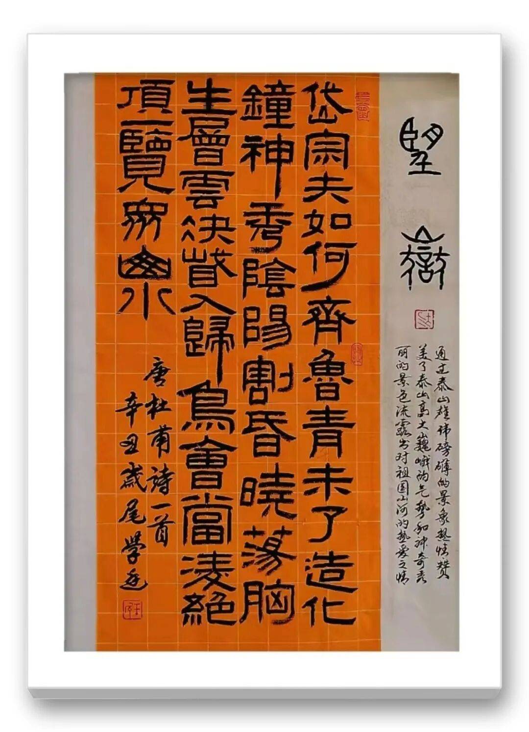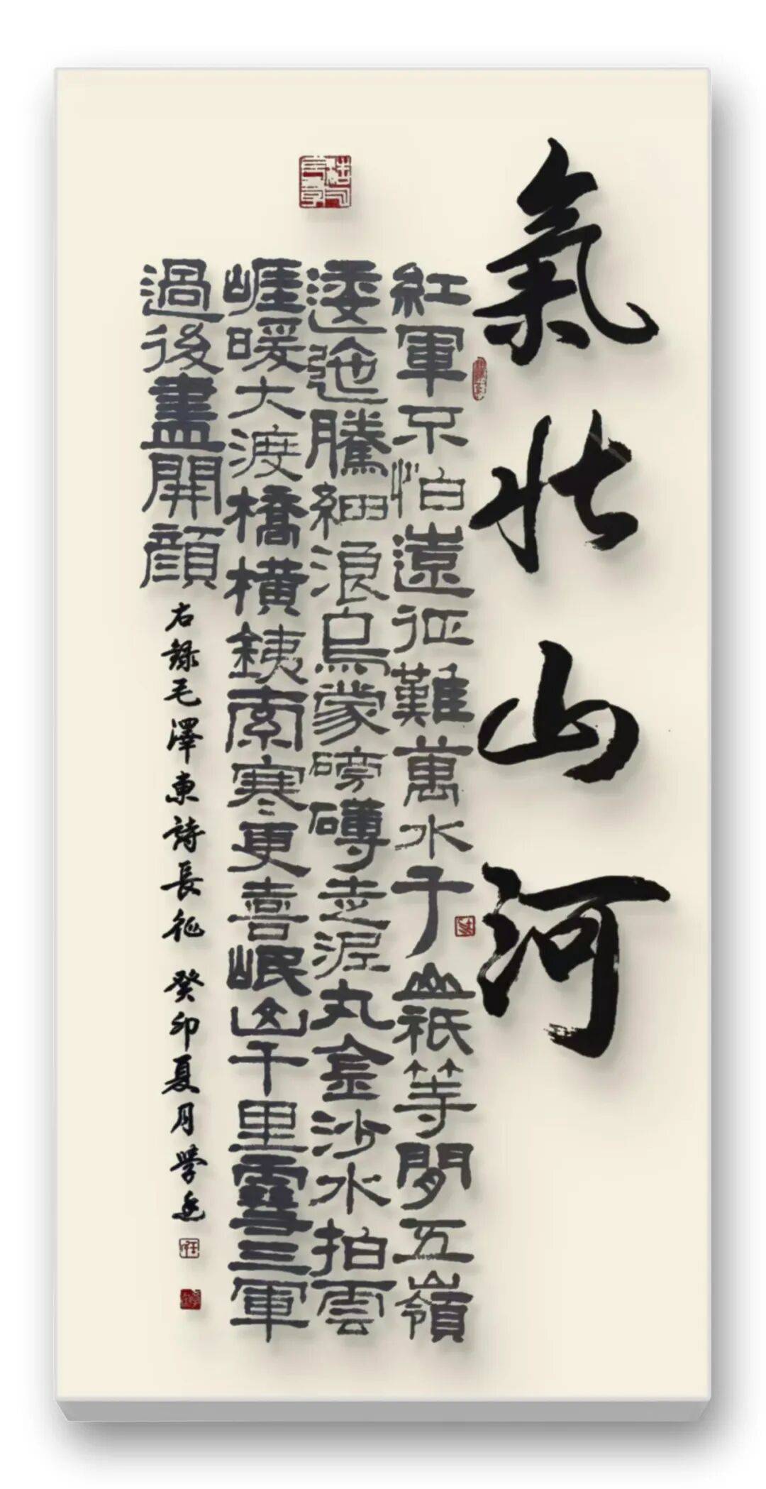 观其隶书作品,笔画的“蚕头燕尾”并非刻板模仿,而是在提按顿挫间融入个人理解:起笔时的方劲与收笔时的含蓄,既保留了汉隶的古朴气象,又添了几分当代人的笔墨意趣。结体上,他突破了汉隶“扁方取势”的单一范式,偶有长形结体的尝试,在规整中求变化,于平正中见奇崛,使隶书的空间布局充满节奏感。