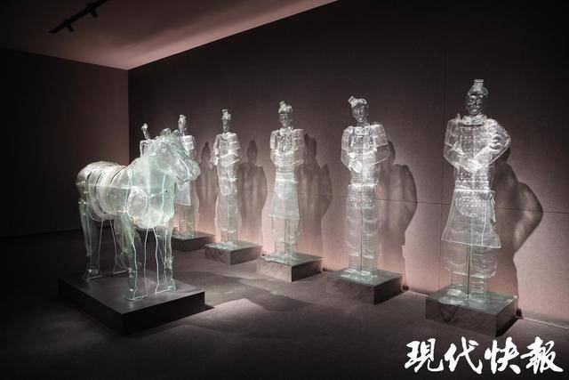 作为馆内“明星展区”,世界第四大琉璃雕塑展厅内,镇馆之宝《兵马俑》琉璃雕塑格外吸睛:六尊琉璃兵马俑与一匹琉璃马组成的艺术群像,不仅是世界最大琉璃马雕塑,更以剔透材质复刻出历史的厚重感,阳光透过玻璃穹顶洒在琉璃作品上,折射出流光溢彩的视觉效果。在郭宁看来,老厂房的工业风与琉璃的现代感碰撞,让艺术有了更生动的表达。