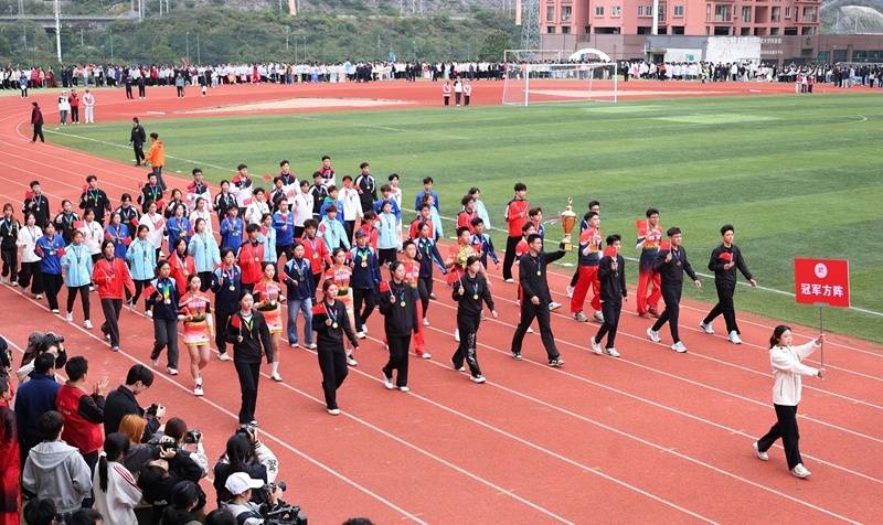 仪仗方队、彩旗方队、冠军方队、裁判员方队及各学院方队依次入场,青春气息与热烈氛围扑面而来。