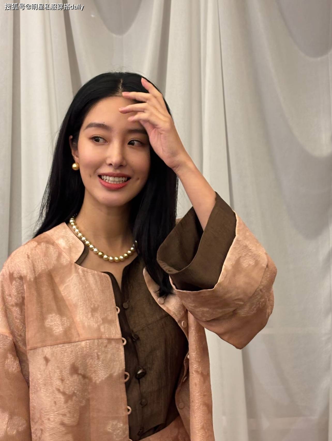 近日在展示艺术作品的活动中,杨采钰更是以一身新中式造型惊艳亮相,褪去法式风情,尽显东方古典韵味:绯色立领衬衫叠搭咖啡色内搭,配同色系新中式阔腿裤,再以珍珠配饰点缀,笑靥间梨涡浅浅,每一处细节都透着 “岁月沉淀后的优雅”,完美诠释了 “当妈后更有韵味” 的美好状态。