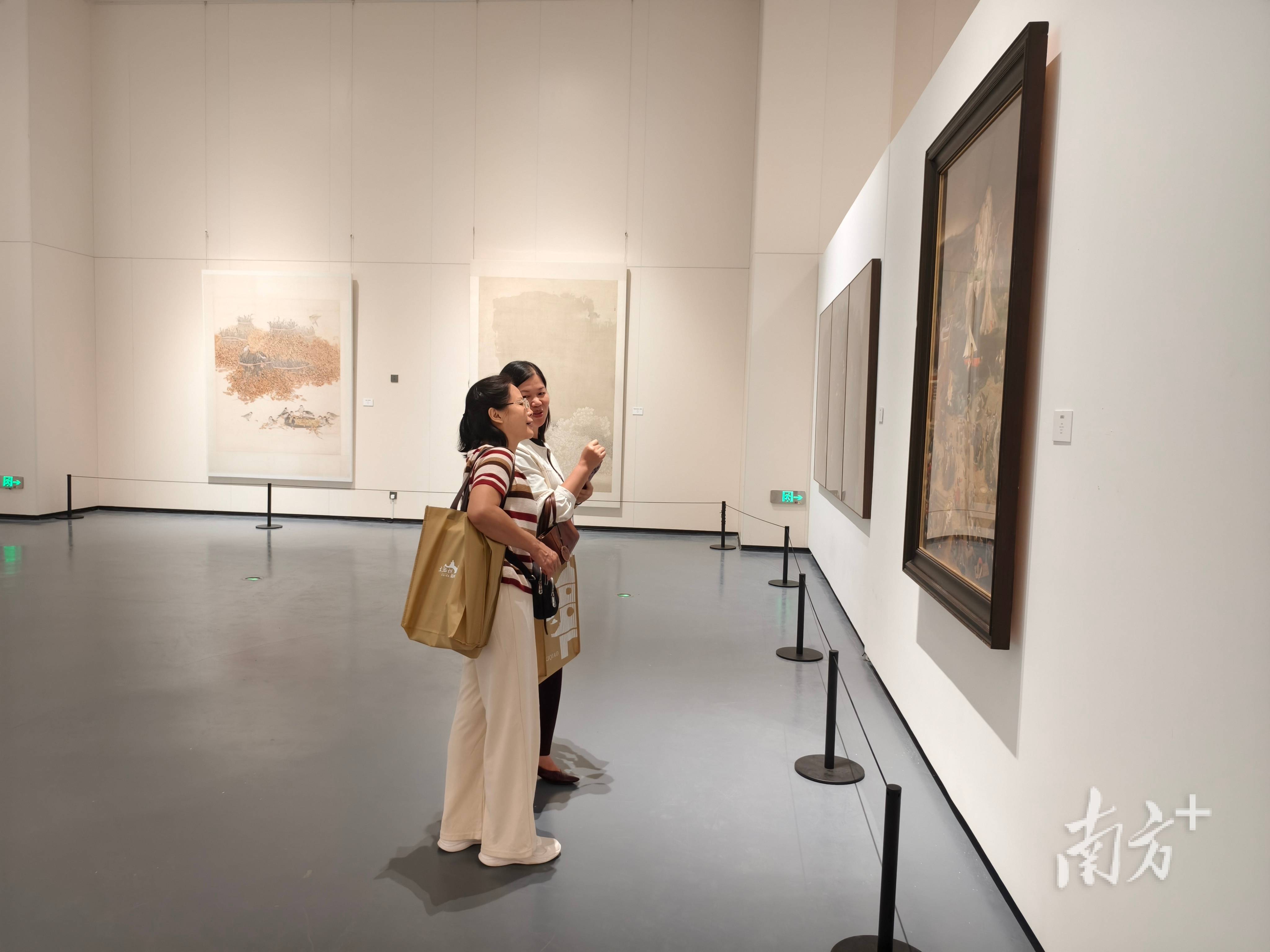 展览分为“溯岭南文脉”“呈当代气象”和“启艺科新航”三大板块。“溯岭南文脉”板块聚焦明清至近代南海艺术的历史脉络,系统梳理了18位在中国美术史上具有重要地位的南海籍艺术家。其中,明代画家颜宗的《湖山平远图》作为广东存世最早的画作首次在南海展出,一同亮相的还有明代水墨写意花鸟画开创者林良的《双鹰图》。