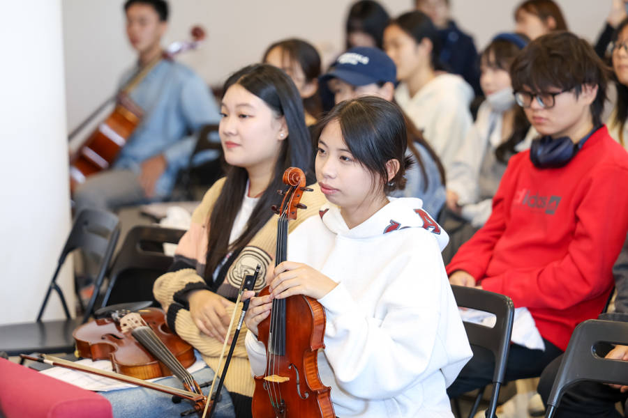“开头的音要软一点,还要把声音’送’到观众耳朵里!”上海立信会计金融学院上川路校区音乐厅内,小提琴家德田智子握着学子的琴弓耐心点拨,秋日暖光为这场跨国艺术交流铺上温柔底色。