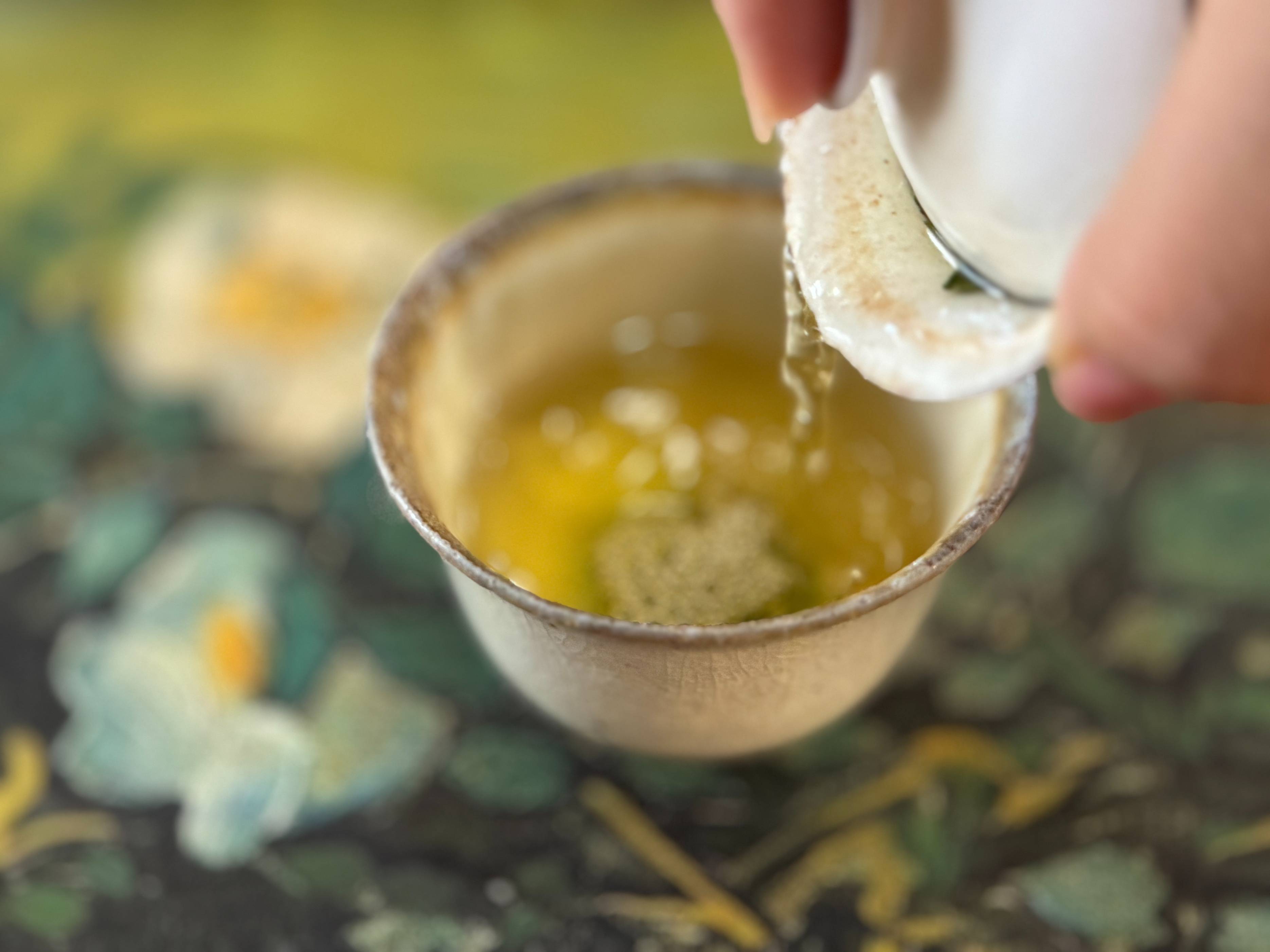 若暂时没有克秤,就确保投入杯中的干茶量,能薄薄一层覆盖住杯底即可。