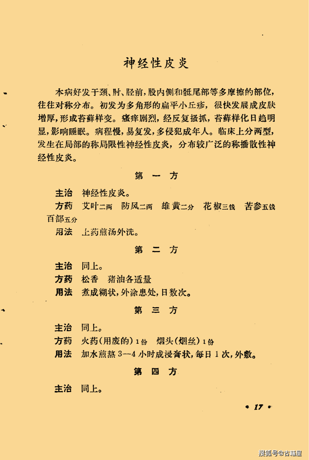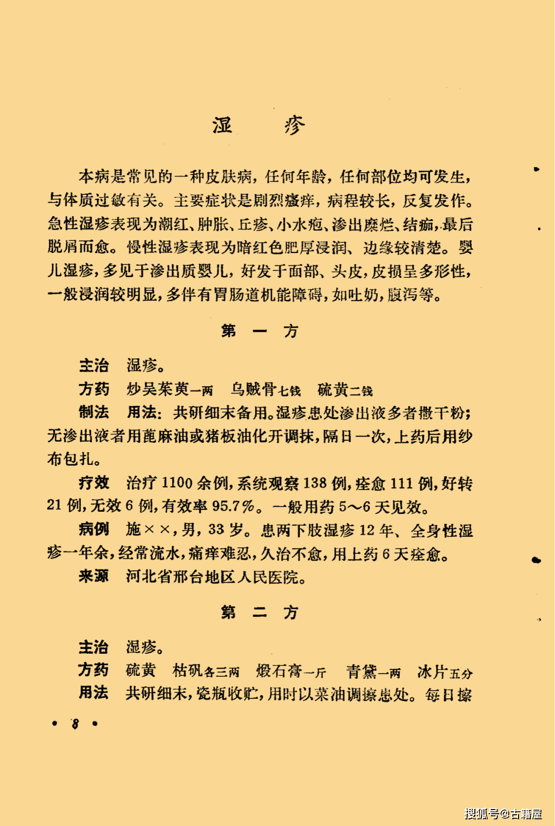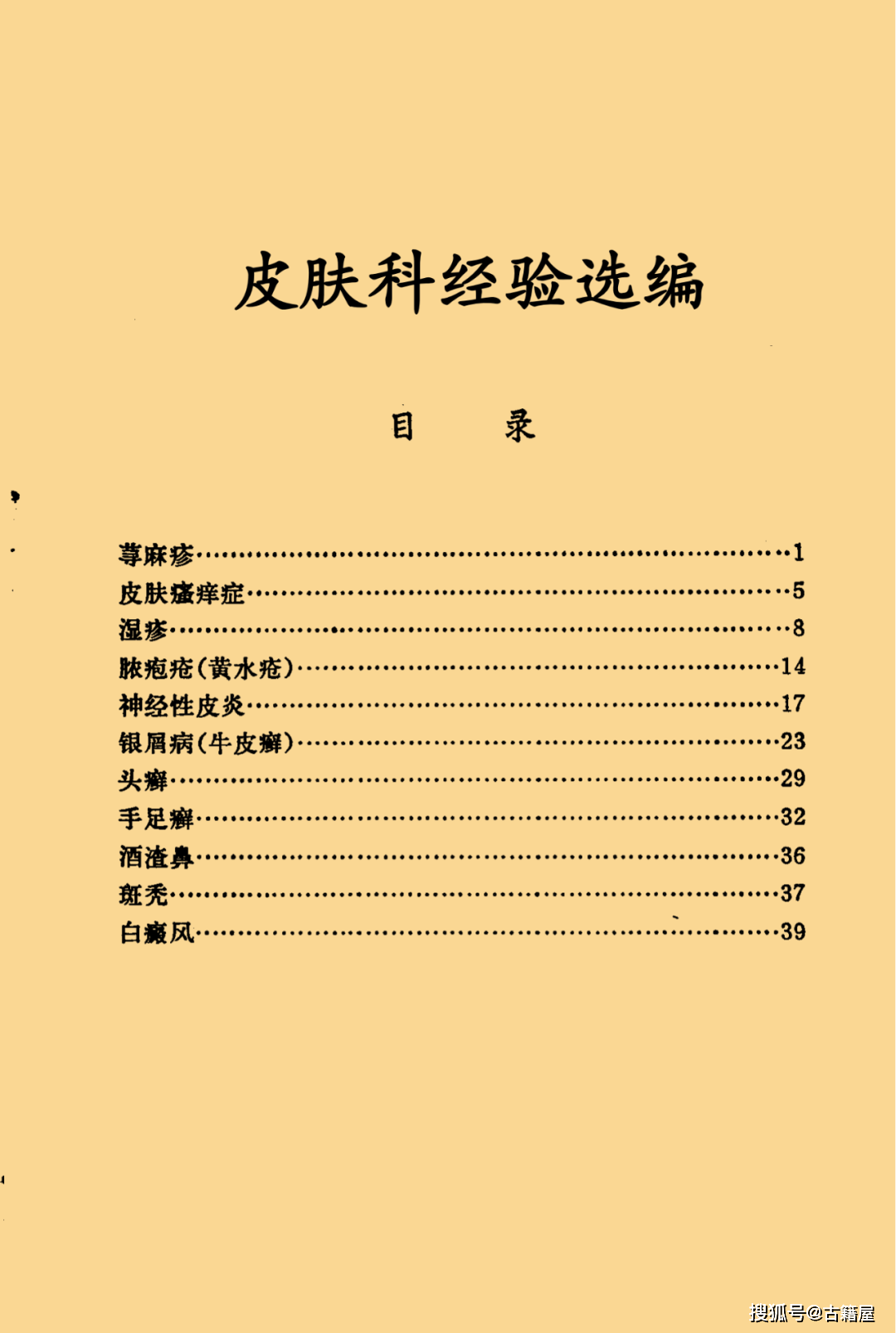 中医皮肤科书籍《皮肤科经验选编》页数: 41页 简介:《皮肤科经验选编》中医皮肤科相关书籍。内容包含:荨麻疹,皮肤瘙痒症,湿疹,脓疱疮(黄水疮),神经性皮炎,银屑病(牛皮癣),头癣,手足癣,酒渣鼻,斑秃,白癜风。