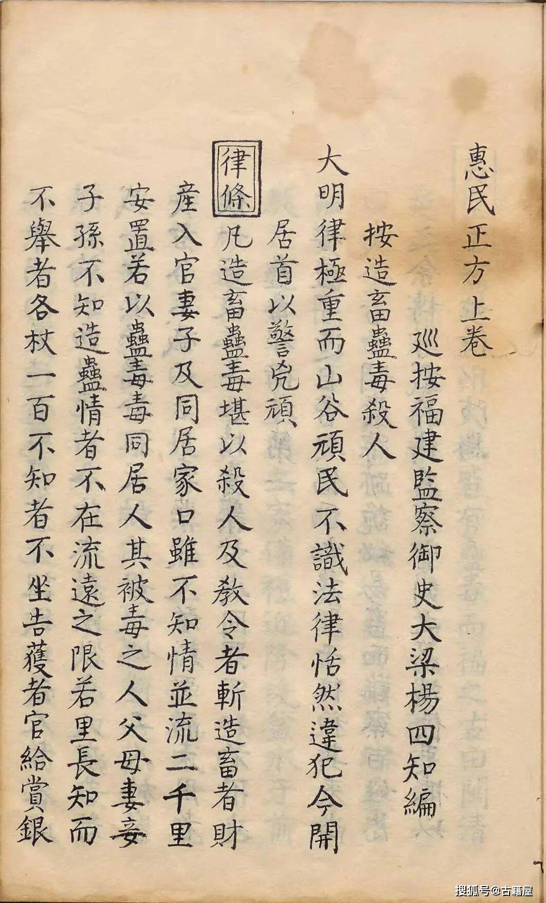 中医方书古籍《惠民正方》杨四知 页数: 81双页162页 简介:《惠民正方》杨四知,中医方书相关古籍,《惠民正方》是一部明代医学古籍,由巡按福建监察御史杨四知编撰,成书于明万历十二年(1584年)。该书以防治蛊毒为核心,涵盖蛊毒的起源、种类、危害及解救方法,同时收录了针对蛇虫咬伤、药物中毒、食物中毒等各类毒物的治疗方剂,体现了古人对毒物防治的实践经验。
