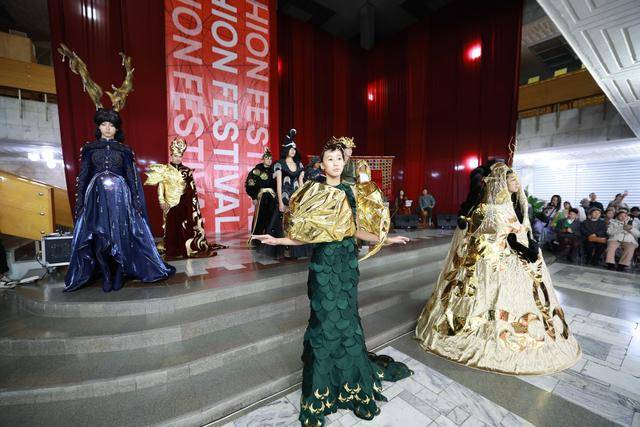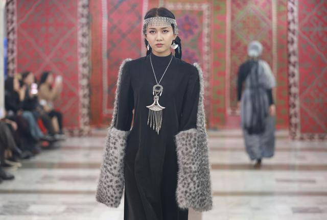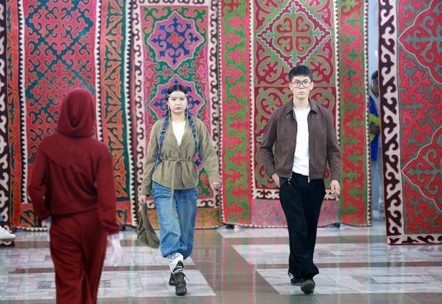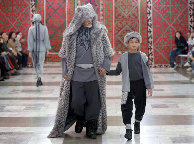 10月30日,在 吉尔吉斯斯坦首都 比什凯克举行的游牧民族时装艺术节上,模特展示时装作品。