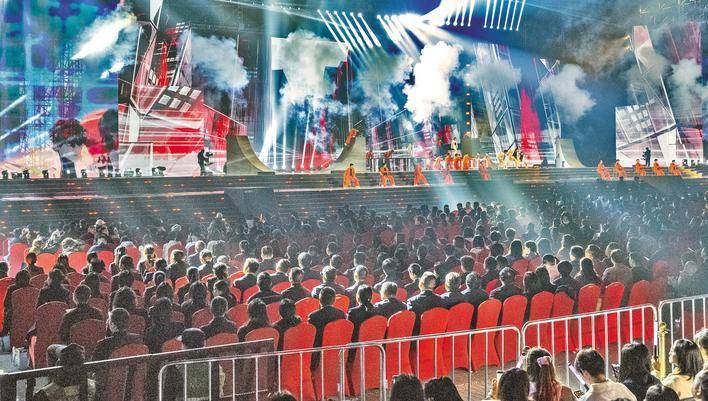 10月30日晚,“点亮长江”——2025长江文化艺术季在宜昌闭幕。为期49天的2025长江文化艺术季,以艺术为桥、科技为翼、文旅为魂,倾力呈现荆楚之姿、长江之美、中国之韵。闭幕式后,两万余名嘉宾观摩了2024—2025年度中国电影大数据暨电影频道M榜荣誉之夜活动。(湖北日报全媒记者 刘曙松 摄)