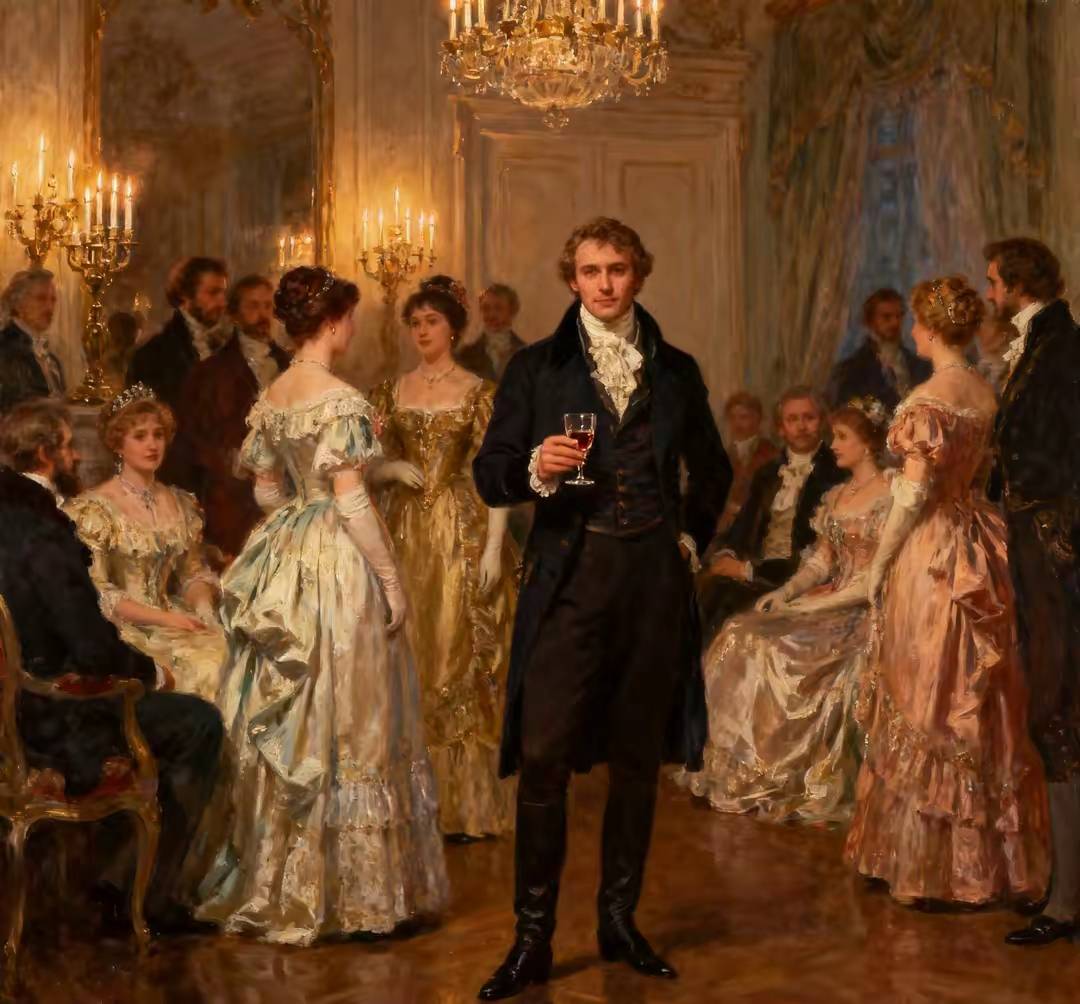 圣彼得堡的冬夜,舞厅中烛火摇曳,一位青年倚靠廊柱,眼神淡漠地扫过喧闹的人群。他身着丝绒礼服,指尖轻晃酒杯,却仿佛与周遭的繁华隔着无形的墙。这不是寻常的贵族公子,而是普希金笔下那个矛盾、忧郁、永远在寻找却始终迷失的灵魂——叶甫盖尼·奥涅金。