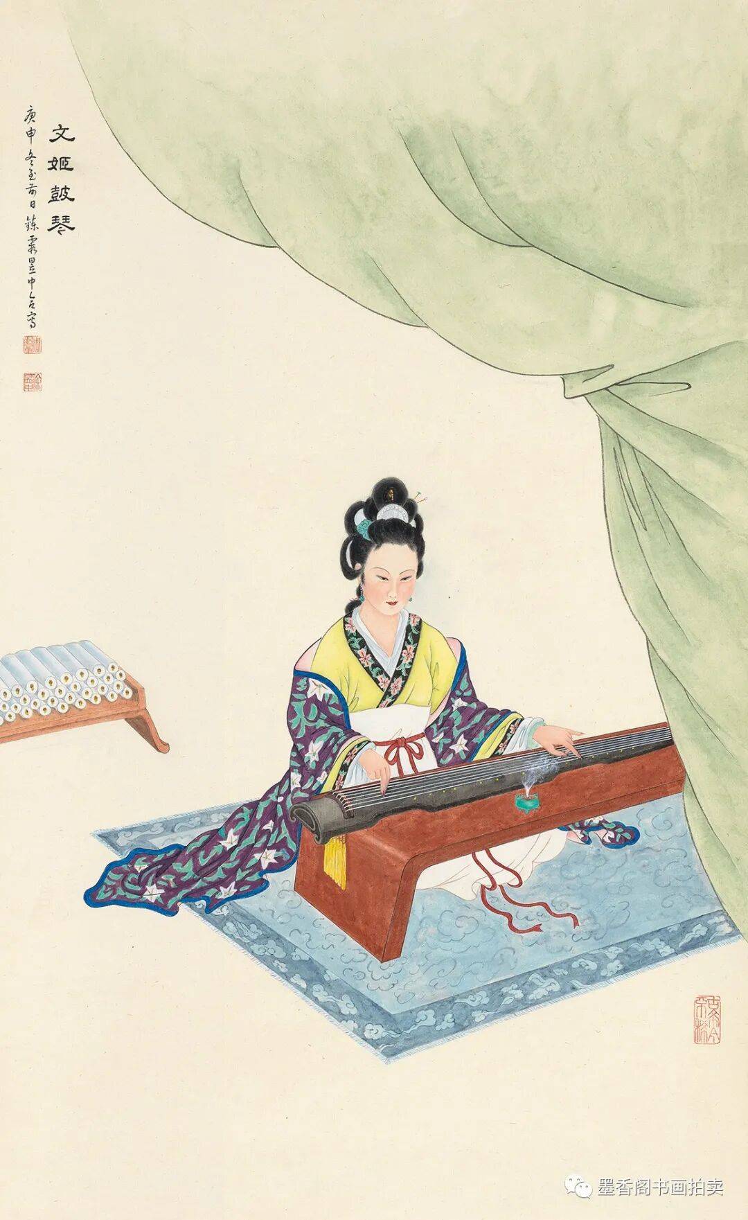 周炼霞 1980年作 文姬鼓琴 立轴 设色纸本