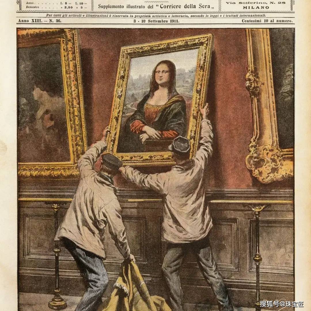 1911年9月意大利出版的《多门尼加邮报》,以漫画形式描绘了《蒙娜丽莎》失窃的场景