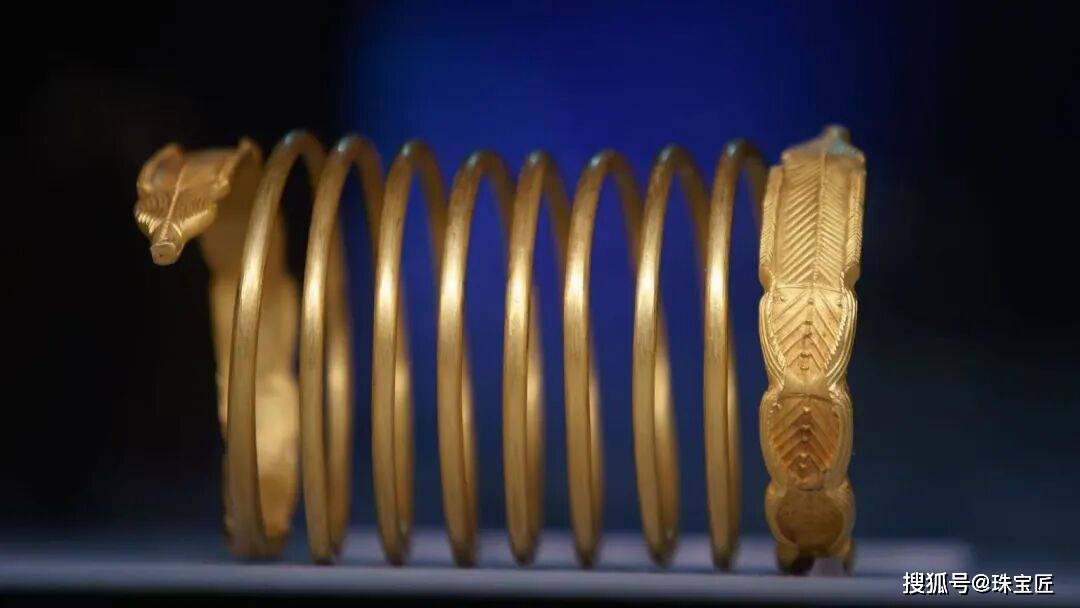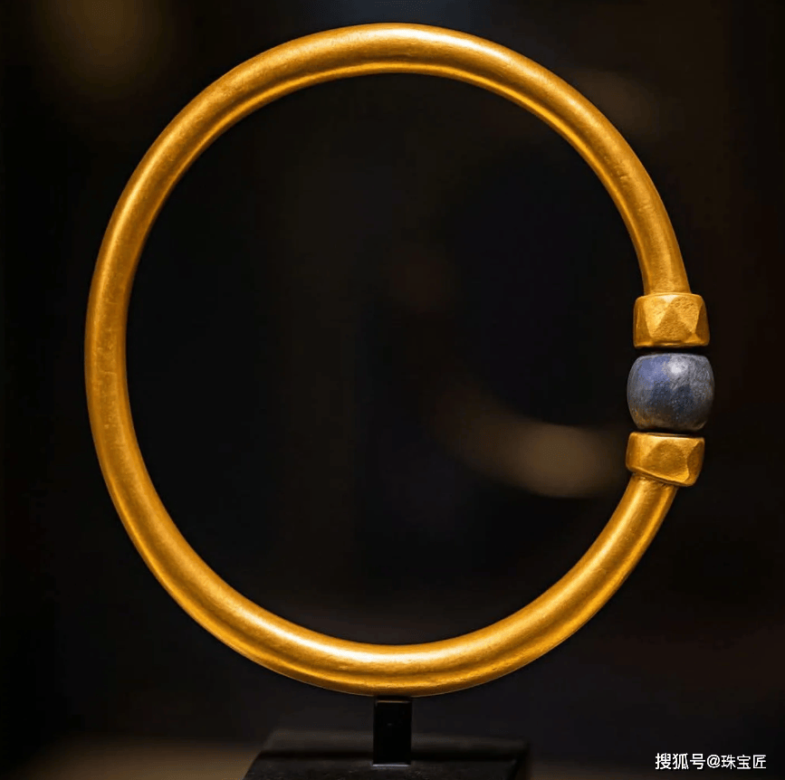 这件黄金手镯曾属于古埃及第21王朝(公元前1070年至945年)法老阿蒙涅姆佩(Amenemope),至今已有3000多年的历史,手镯开口处镶嵌有一枚青金石圆珠,历史与文化意义非凡。