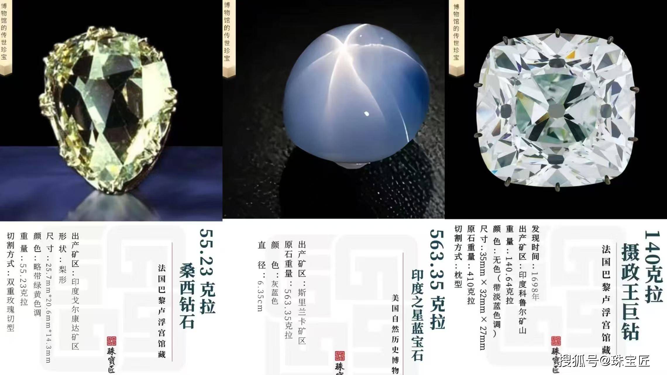 左:摄政王钻石 中:霍普蓝钻 右:桑西钻石