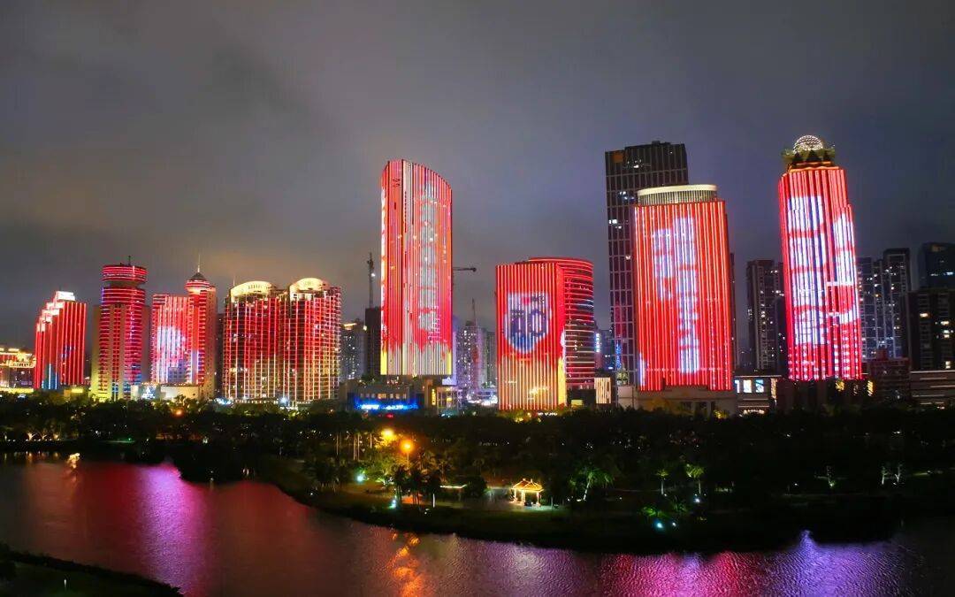 滨海大道楼宇灯光秀播放欢迎刀郎及“刀迷”们的标语。微信公众号“海口发布”图